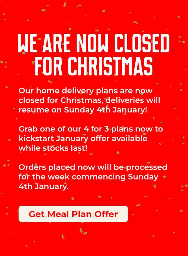Our home delivery plans are now closed for Christmas, deliveries will resume on Sunday 4th January! Grab one of our 4 for 3 plans now to kickstart January offer available while stocks last! Orders placed now will be processed for the week commencing Sunday 4th January.